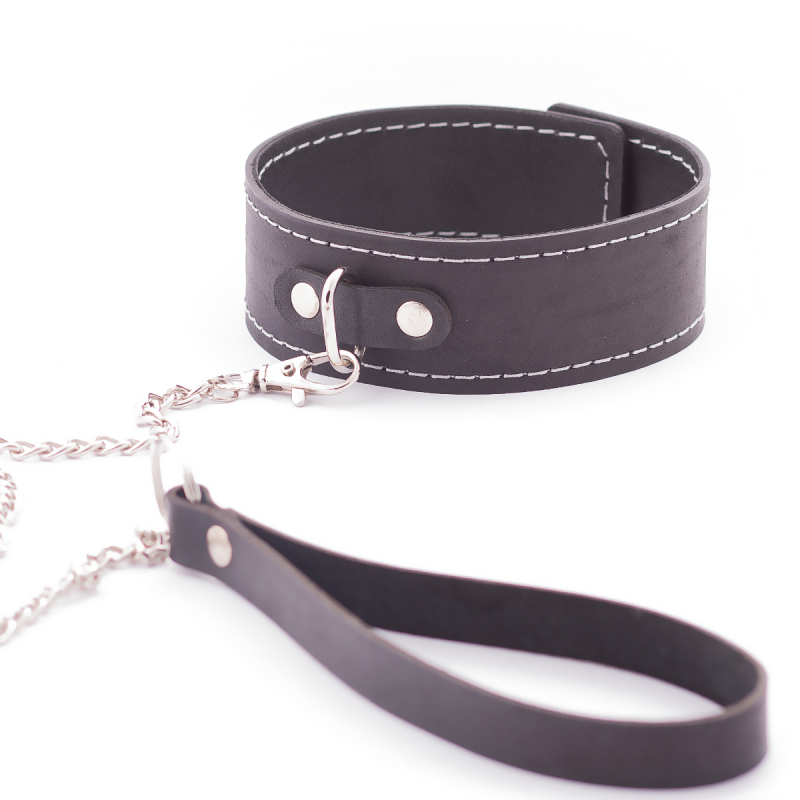 Стильный ошейник, из коллекции "Crazy Handmade" с металлическим поводком - отличный БДСМ аксессуар для самой незабываемой сессии!