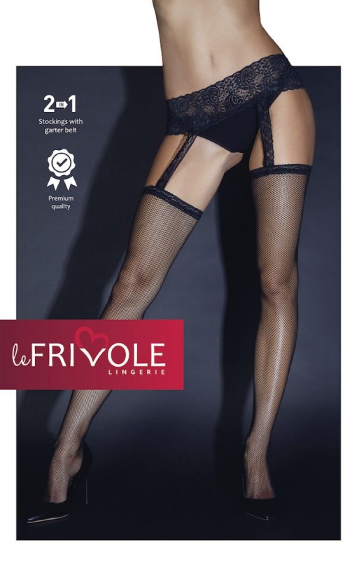 Чулки с поясом "Le Frivole" имитация, черная сетка, S/M