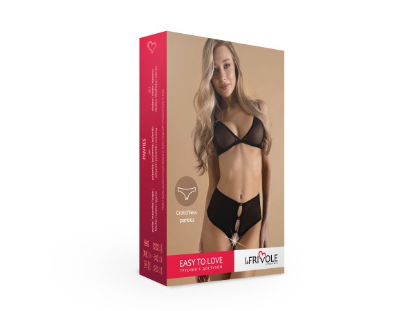 Трусики с высокой талией "Le Frivole" с вырезом в промежности, черные, S/M